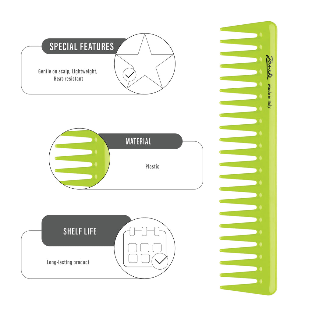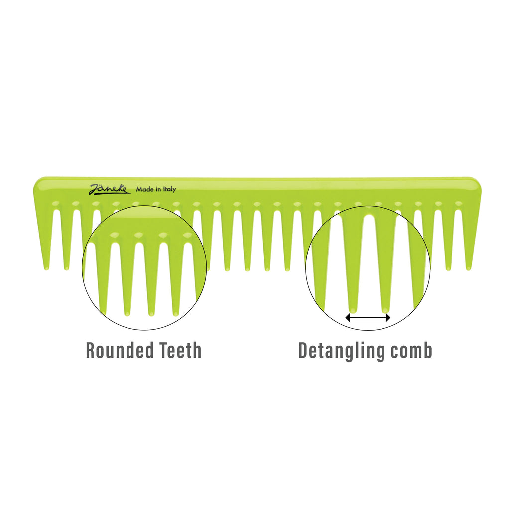 Lime fluo Supercomb made of shockproof PMMA. Gently detangles hair and applies product evenly. Great for salon or home use, especially on damp or tangled hair.