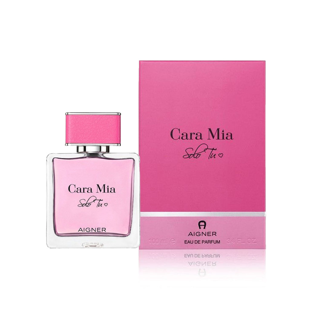 Aigner Cara Mia Solo Tu's lively, cheerful and at the same time seductive fragrance creation, captivating the top note with a fascinating mix of peach , mandarin and pink pepper . The heart of the fragrance radiates with a dreamlike, sensual bouquet of wonderful peony and Arabian jasmine , which is rounded off by a touch of delicately scented violet leaves . In the base note, the warm and beguiling composition of sandalwood and cashmere wood enchants into a passionate finale. the never ending love story.