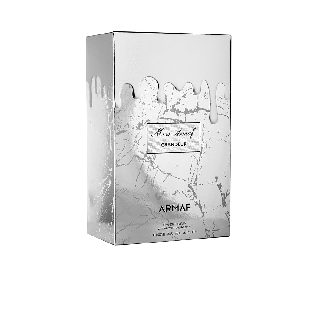 Grandeur by Armaf is a fragrance for women. This is a new fragrance. Grandeur was launched in 2023. Top notes are Bergamot, Rose and Floral Notes; middle notes are Peach and Fruity Notes; base notes are Amber, Musk and Patchouli.