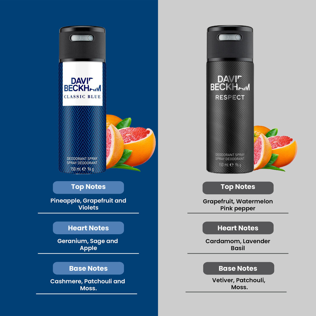 David Beckham Classic Blue 150ml + Respect 150ml Deo Combo Set (Pack of 2)