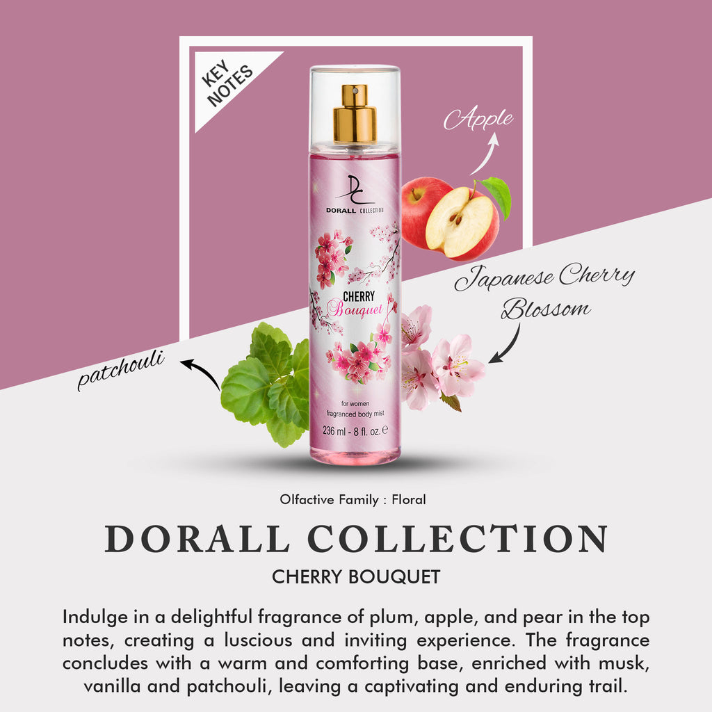 Indulge in a delightful fragrance featuring the sweet allure of plum, apple, and pear in the top notes, creating a luscious and inviting experience. The heart notes unfold with the elegant harmony of Japanese cherry blossom, rose, lily, and tuberose, adding a floral and feminine touch. The fragrance concludes with a warm and comforting base, enriched with musk, sandalwood, vanilla, amber, and patchouli, leaving a captivating and enduring trail.