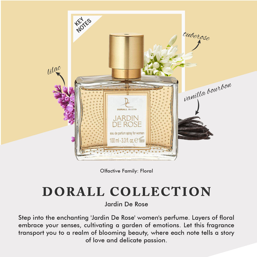 Step into the enchanting 'Jardin De Rose' women's perfume. Layers of floral embrace your senses, cultivating a garden of emotions. Let this fragrance transport you to a realm of blooming beauty, where each note tells a story of love and delicate passion.
