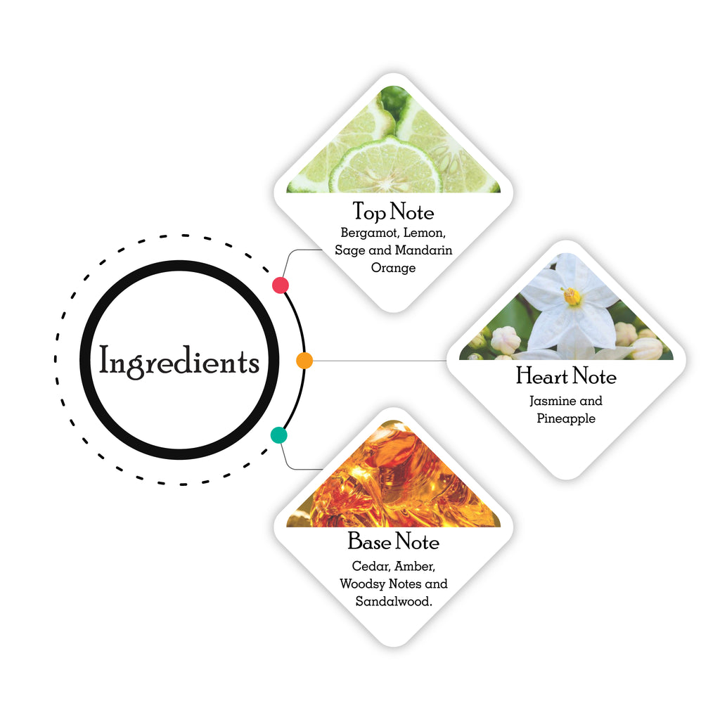 An intoxicating fragrance that brings freshness to the top and sublimate the heart to finish on an unusual background of rare cedar, Amber and precious woods.