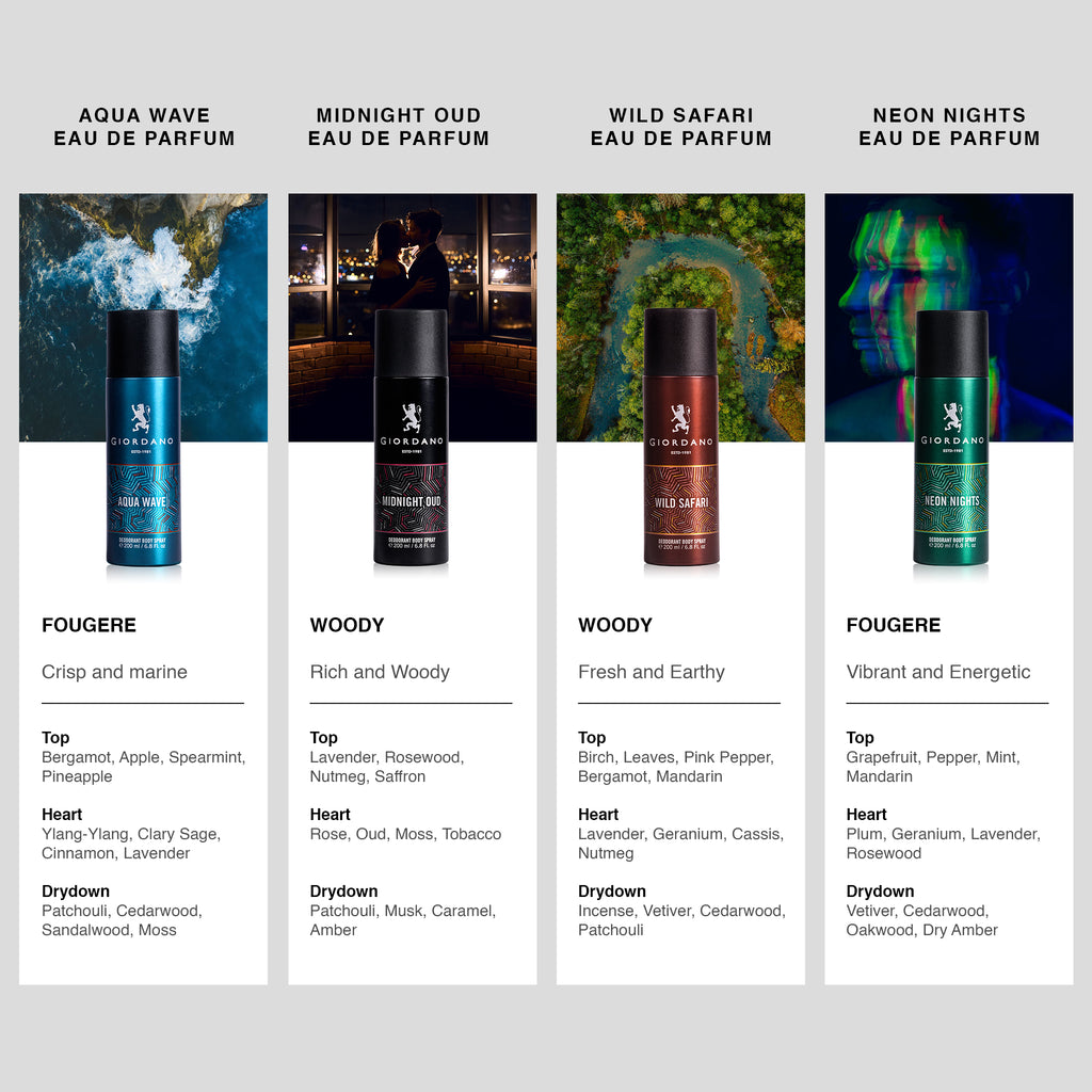 Success is not just a destination—it's a journey, a mindset, and a way of life. It’s more than a goal — it’s the rhythm of your heartbeat, the fire in your soul, and the quiet confidence that draws others in. The "Giordano Fragrances for Success" collection is designed to resonate with the seductive allure of ambition, the pulse of passion, and the intimate moments of personal triumph. Each fragrance is a reflection of the milestones that shape your journey, weaving together stories of love, desire, adventure, and growth. Crafted to empower and inspire, these scents don’t just embrace your inner drive—they ignite it, helping you embrace your true self. Let each fragrance awaken your senses and fuel your passion, making every step toward success as unforgettable as the scent you leave behind, turning everyday moments into milestones.