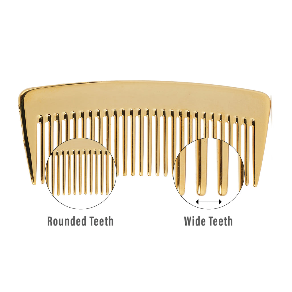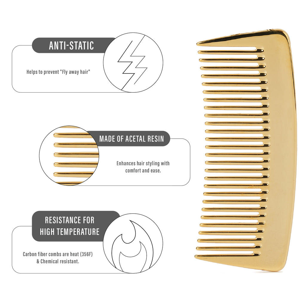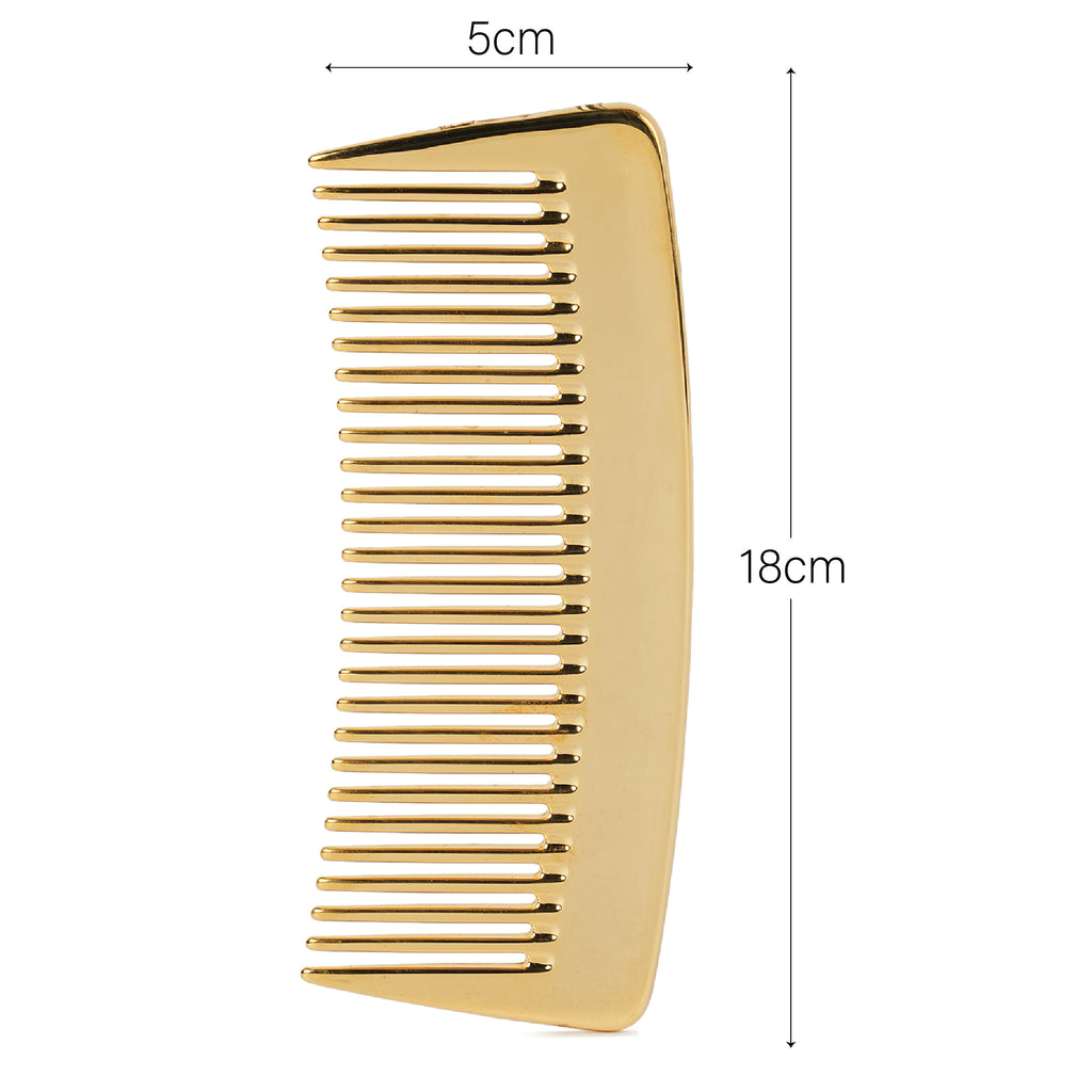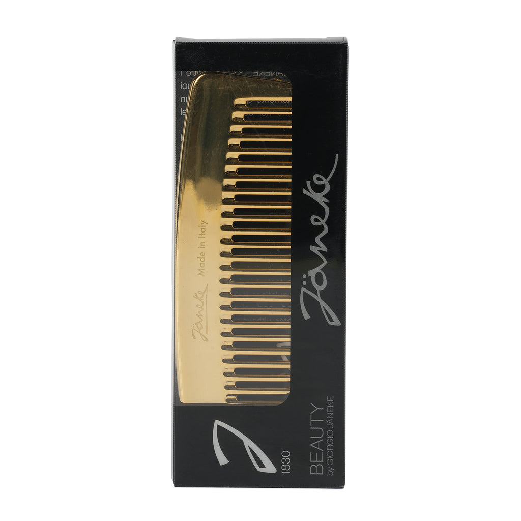 JANEKE golden wide teeth styling comb This wide-toothed comb with rounded tips is all you need to gently remove tangles and tame your tresses at home or on the go, thanks to its pocket-friendly size. In addition, the JANEKE handbag comb has a golden finish that is elegant and aesthetically pleasing.