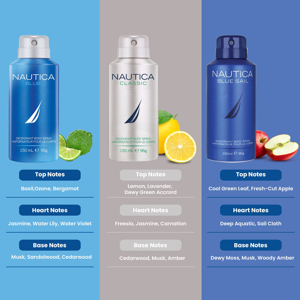Nautica Blue + Classic Man + Sail Deo Combo Set 450ml (Pack of 3) For Him