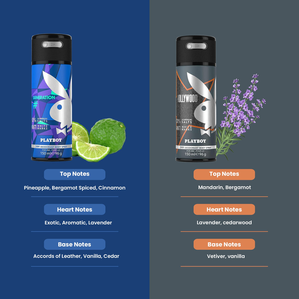 Playboy Generation Man + Hollywood M Deo Combo Set 300ml (Pack of 2) For Him