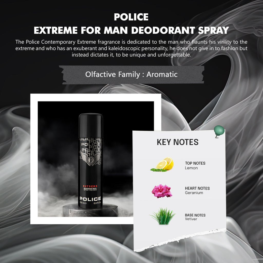 The Police Contemporary Extreme fragrance is dedicated to the man who flaunts his virility to the extreme and who has an exuberant and kaleidoscopic personality - he doesn’t give in to fashion but instead dictates it, to be unique and unforgettable!