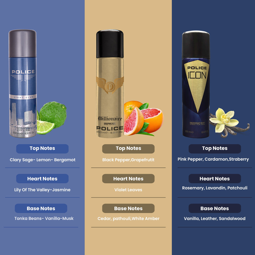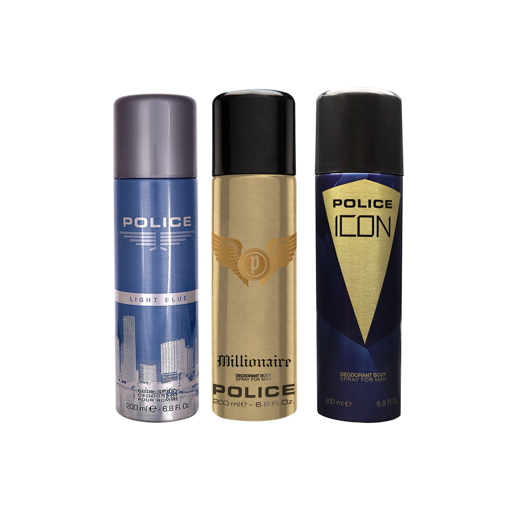 Police Light Blue + Millionaire Homme + ICON Deo Combo Set 600ml (Pack of 3) For Him