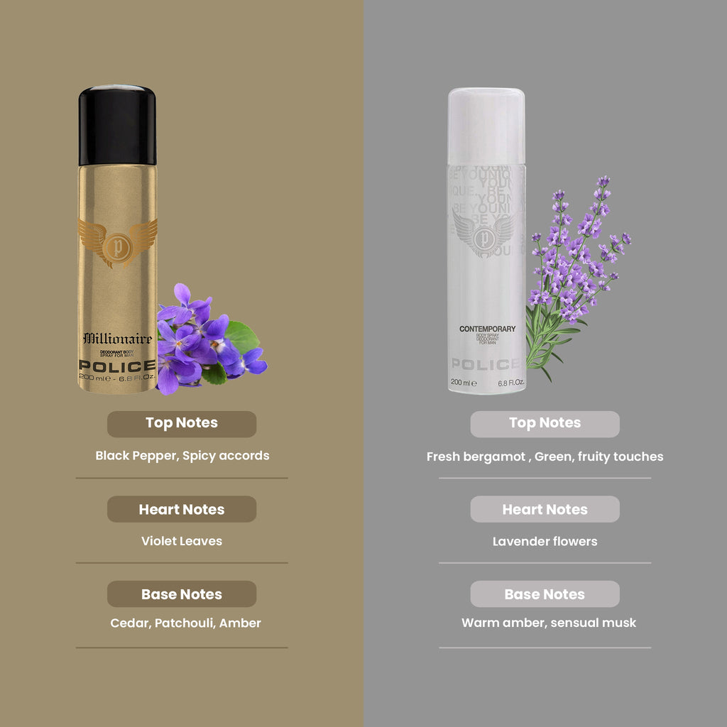 Police Millionaire Homme + Contemporary Deo Combo Set 400ml (Pack of 2) For Him