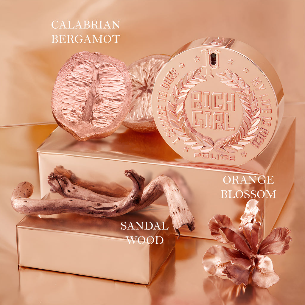 It opens with the sweet allure of Raspberry Sorbet, perfectly blended with a vibrant bouquet of floral notes. The heart unfolds with a captivating floral character, harmoniously paired with fruity accents to create a lively and charismatic sensation. The base is creamy and opulent, where warm Sandalwood and sensual Vanilla intertwine, while Amber Woods add depth and sophistication. This indulgent combination leaves a unique and precious trail, embodying elegance and personality.