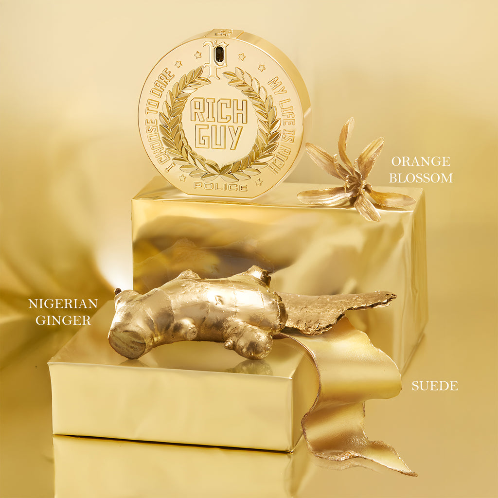The fragrance opens with vibrant Nigerian Ginger, a refreshing splash of Cascalone®, and the seductive allure of spicy Black Pepper. At its heart, the scent reveals the bold character of Absinthe and Orange Blossom, beautifully contrasted by the earthy charm of Tobacco Leaves for an intriguing twist. The base is a velvety fusion of Tonka Bean, suede, and Amber Woods, embracing you in a warm, indulgent trail that sparkles like precious gold, inviting you to revel in its splendor.