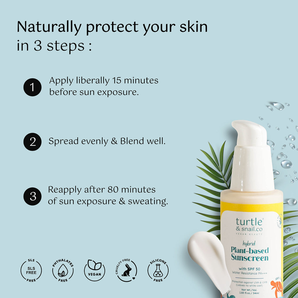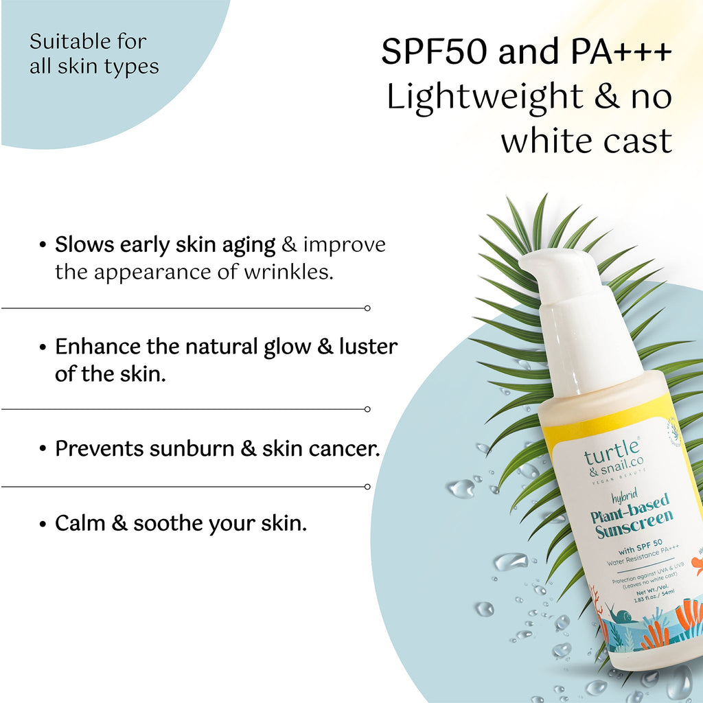 • Turtle & Snail’s Hybrid Plant-based Sunscreen, is your ultimate go-to for sun protection and for preventing skin damage.