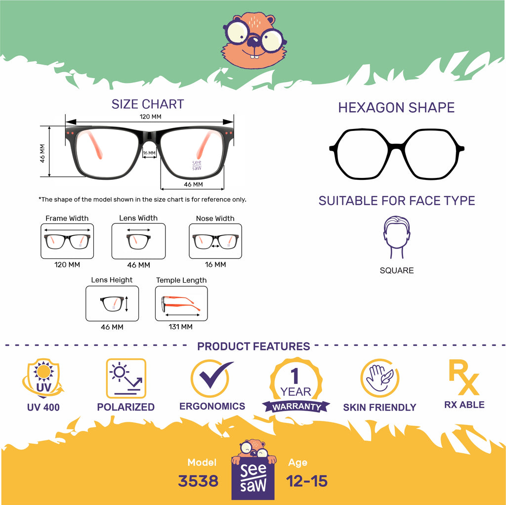 Transform playdates into fashion statements with these sunglasses. Crafted with the utmost care using high-quality materials, these sunglasses offer the best in ergonomic comfort. Designed for extended wear, they can be worn for longer hours without inducing stress or discomfort, all while providing UV protection.Size -