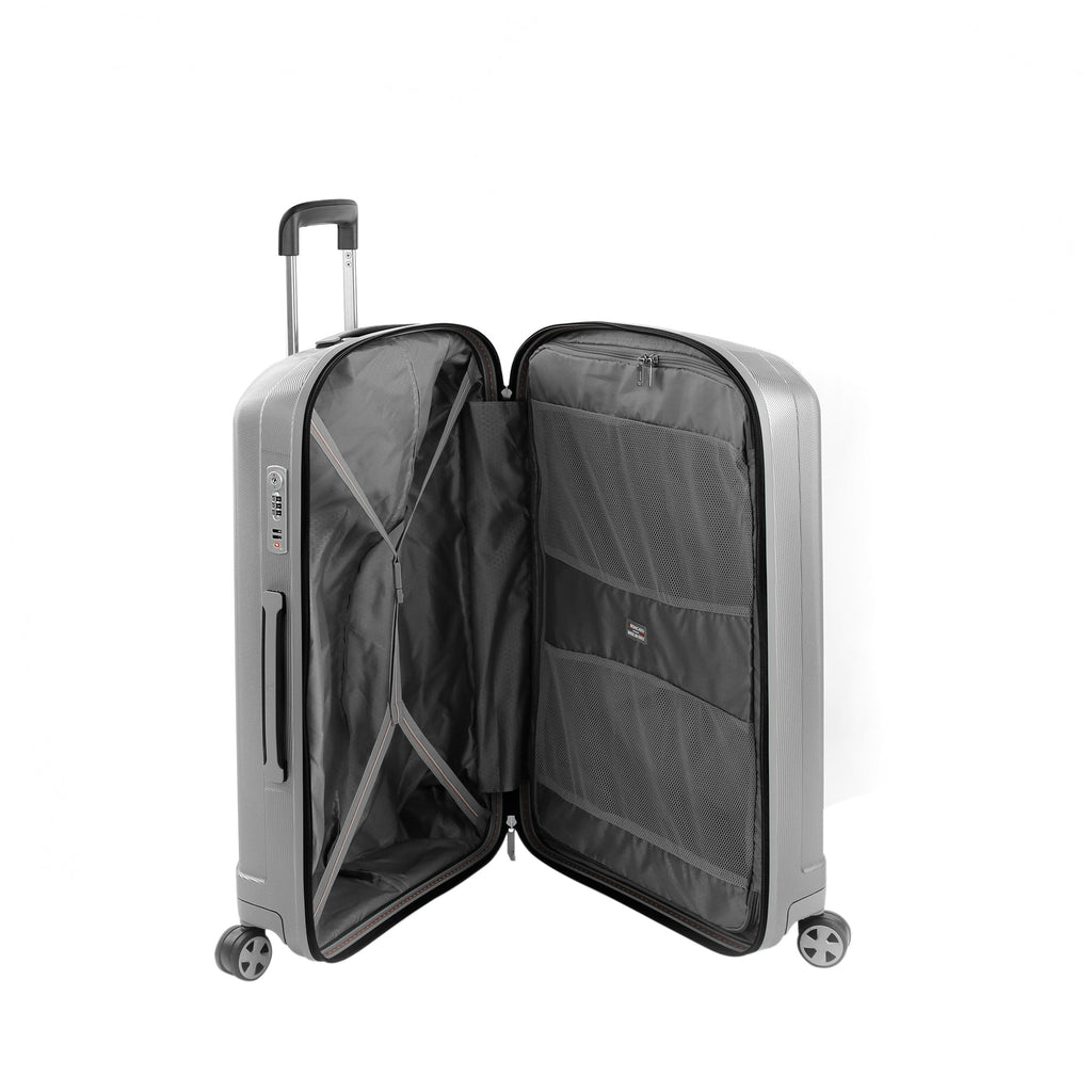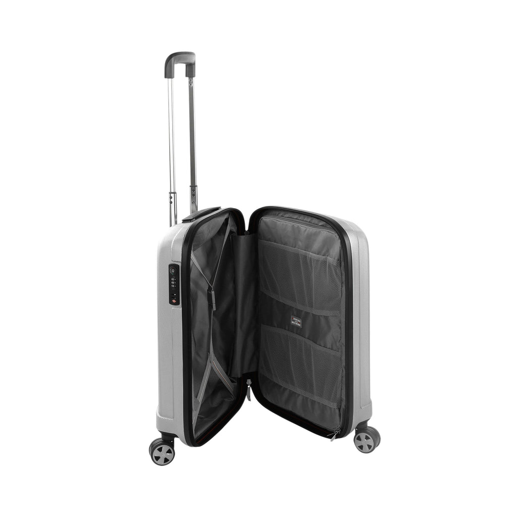 Multidirectional Spinner 360 Degree Spinner Wheels System Allows For Silent And Fluid Motion That Makes The Wheels Glide With Ease Across Different Terrains, Whilst Ensuring That The Weight Is Evenly Spread Full Featured Interior Maximize Packing Efficiency With Multi Functional Compartments And Garment Straps. Push Button Handle Locks When Fully Extended So You Can Push Or Pull Your Case. The Handle Also Locks When Fully Recessed, Greatly Reducing The Risk Of Damage When Not In Use. Material Material Is Polycarbonate, Casing Hard, Colour Silver, Internal Material 100% Polyester, Pattern Textured, Lock Type Tsa. 5 Year Worldwide Warranty.