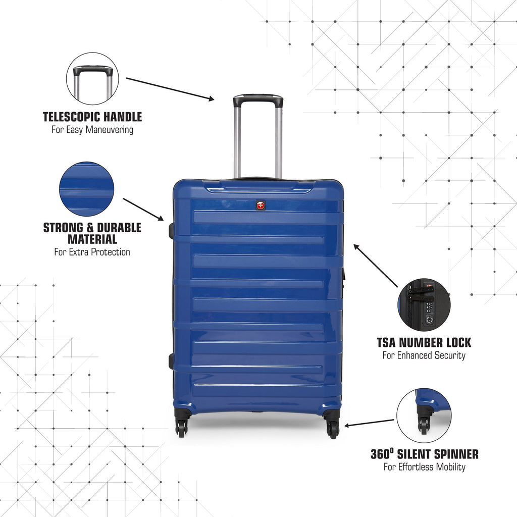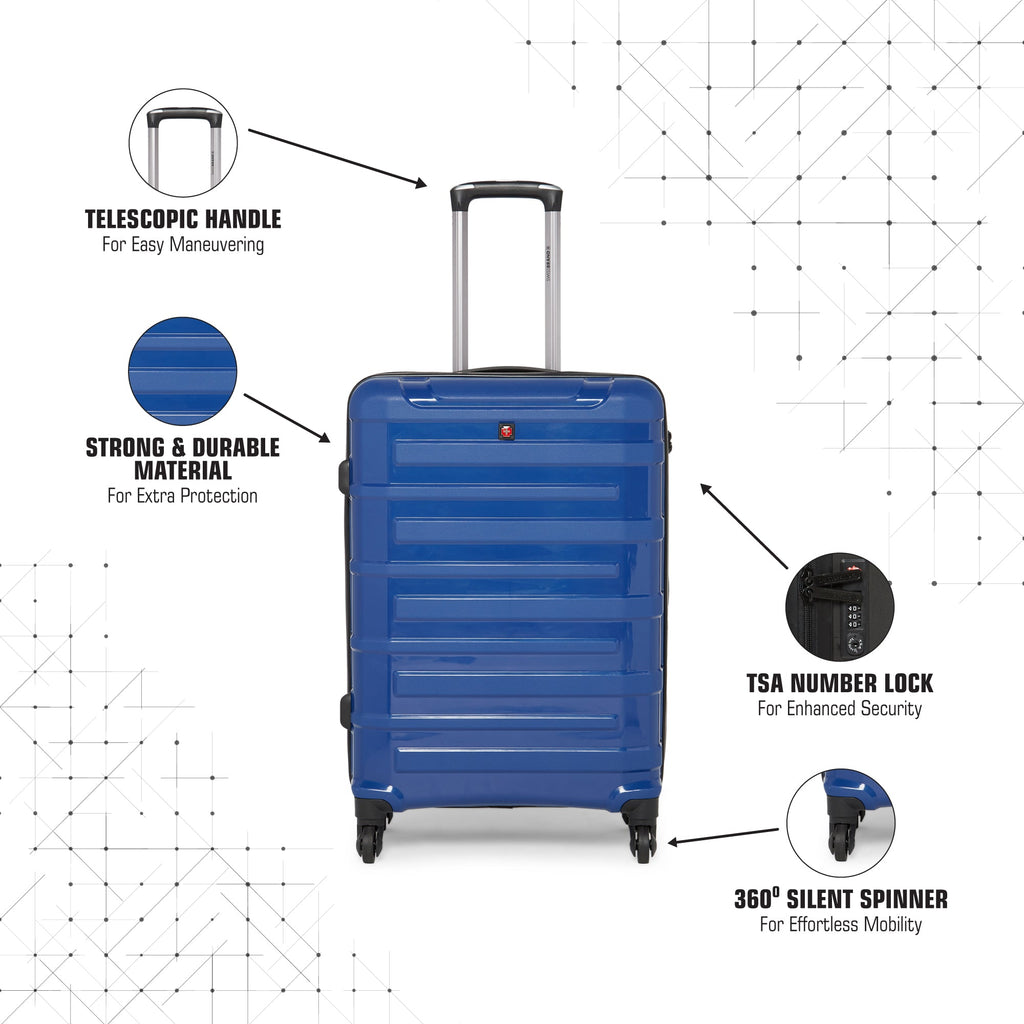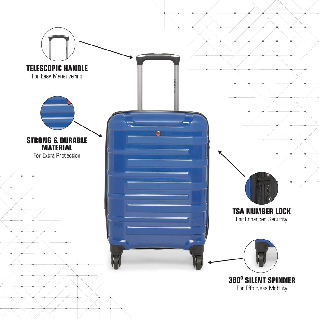 SWISSBRAND SION trolley luggage with TSA locks permit all international airport security personnel to open without damaging the lock or luggage. Allow travellers to receive better weight distribution and mobility. Designed to achieve greater structural rigidity, without adding to the overall weight. Made of the most durable and collision resistant materials, International standard size approved to fit into overhead compartments.